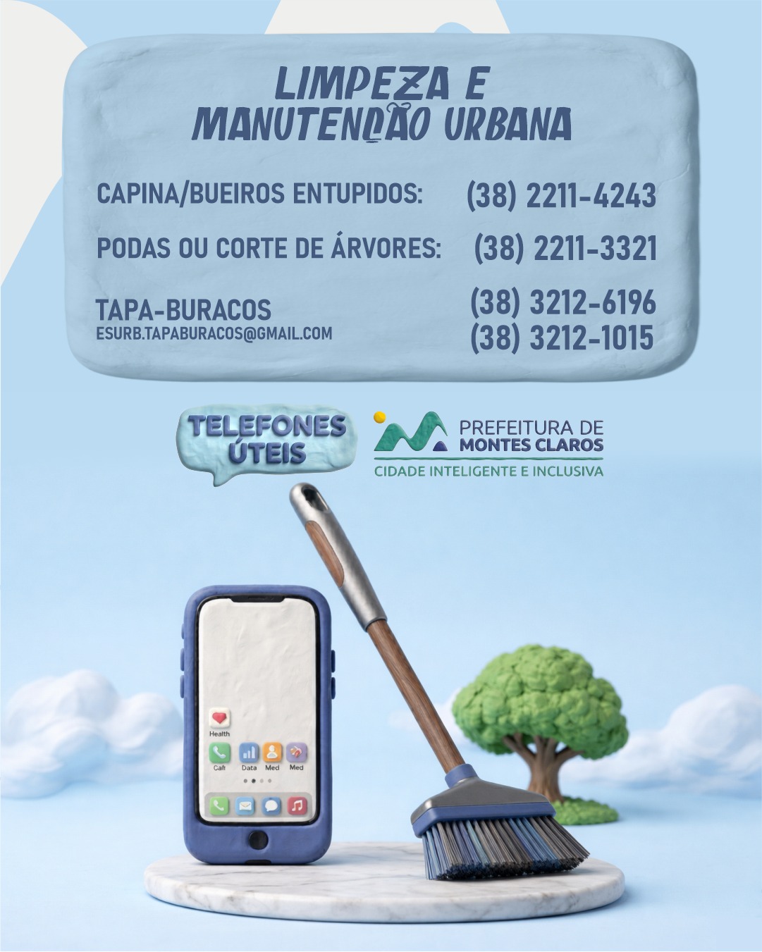 A Prefeitura de Montes Claros, pensando em um bom serviço à população, oferece canais de atendimento exclusivos para que o cidadão possa apresentar suas demandas, fazer denúncias, acessar serviços gerais, além de se informar sobre assuntos referentes à saúde.
